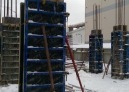 В настоящее время в здании поликлиники завершены работы по заливке бетоном и армированию плиты перекрытия на втором этаже. Строители продолжают работать над армированием стен на третьем этаже.