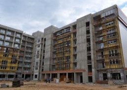 В третьем корпусе выполнена кладка, в четвертом - продолжаются работы по утеплению. В первом корпусе началась внутренняя кладка на первом этаже. Такие же работы производятся во втором корпусе. Кроме того, началась отделка общественных мест.