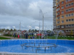 Сегодня в комплексе состоялся первый запуск фонтана, который расположен в самом центре микрорайона и прекрасно дополняет его архитектуру.
